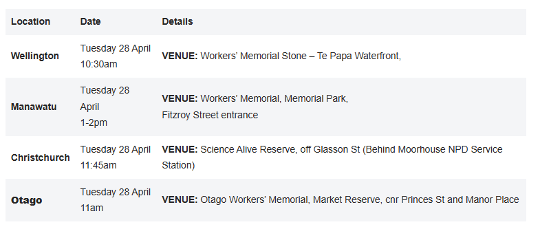 Workers’ Memorial Day is an international trade union movement that honours working people killed and injured because of their work. We honour all workers, and their whanau, who have been impacted by workplace accidents, illnesses, and injuries in the last year.