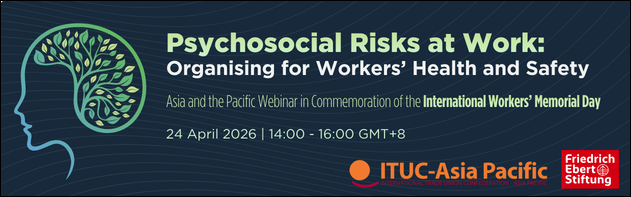 In commemoration of International Workers’ Memorial Day (IWMD) on 28 April 2026, ITUC-Asia Pacific, with support from FES Philippines, warmly invites all affiliates to join a regional webinar on psychosocial risks and organising for workers’ safety and health.